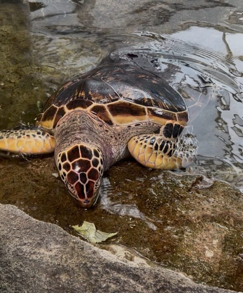 In the early mornings, I sometimes catch sight of sea turtles poking their heads out of the water—it’s always such a moving moment! (The turtle in the photo is from an aquarium, but the ocean in Amami has that kind of natural excitement.)