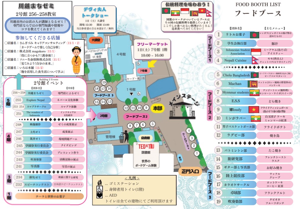This year, we will have food booths from 15 groups from 10 countries. Please take this opportunity to eat and drink from around the world. International students from our university will present their home country's proud dishes. If there is a dish that interests you, ask the student for the recipe. International students are more than happy to be interested in their home country.