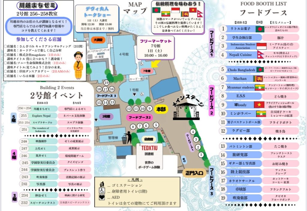 大学祭の企画は、音楽系やダンス系クラブなどを中心に繰り広げられる「ステージイベント」、文化系クラブやゼミなどの発表を主に行う「インドアイベント」、様々な国籍の学生が母国の料理を紹介する「フードブース」の3つに大きく分かれています。それぞれの発表において、日ごろの練習・学習の成果を発揮したり、様々な特技を紹介したり、母国の文化の紹介だったりと、個々の学生が教室内では見せていないアイデンティーを解き放つ場にもなっています。多くの方々に参加していただき、TIU生のパフォーマンスや展示発表などを是非ご覧ください。皆さまと一緒に楽しいひと時を過ごせれば幸甚です。